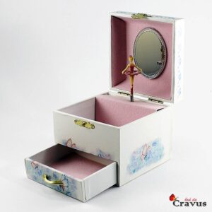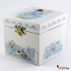 ‘- Caixa com a fada que gira ao tocar a música e tem uma gaveta grande para os pequenos tesouros