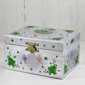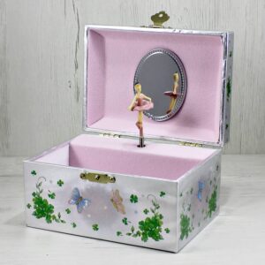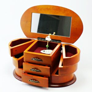 ‘- Esta caixa de música em madeira vai surpreender o seu filho com as suas 2 figuras magnéticas que giram na pista de dança.