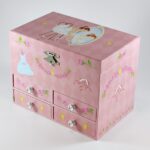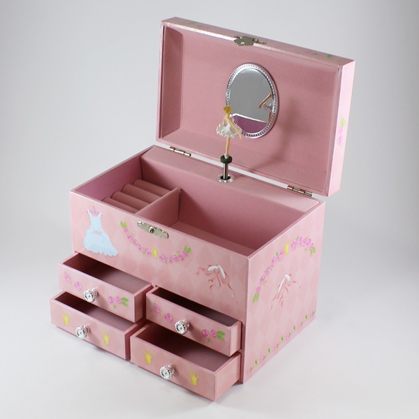 ‘- Caixa de música jóias caixa bailarina, com quatro pequenas gavetas que podem ser abertas e têm espaço para pequenas jóias