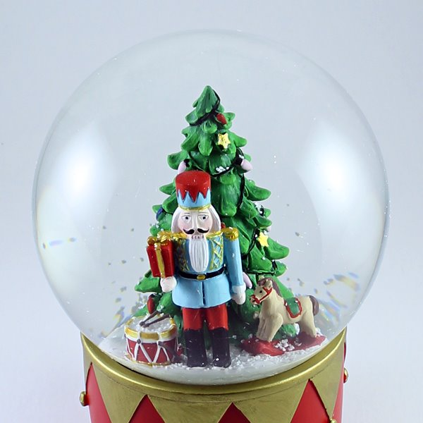 Globo de Neve com Quebra nozes com uma árvore de Natal. Música: “Nutcracker Suite”